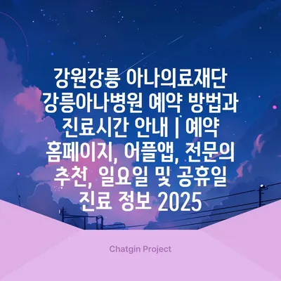 ✅ 강릉아나병원의 예약 방법과 진료시간을 지금 바로 확인하세요!