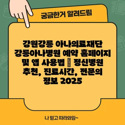 강원강릉 아나의료재단 강릉아나병원 예약 홈페이지 및 앱 사용법 | 정신병원 추천, 진료시간, 전연락 정보 2025에 대해 알려알려드리겠습니다.