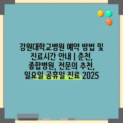 강원대학교병원 예약 방법 및 진료시간 공지 | 춘천, 종합병원, 전연락 추천, 일요일 공휴일 진료 2025 에 대해 자주 묻는 질문 TOP 5
