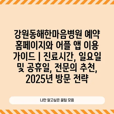 강원동해한마음병원 예약 홈페이지와 어플 앱 이용 가이드 | 진료시간, 일요일 및 공휴일, 전문의 추천, 2025년 방문 전략