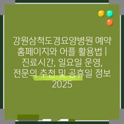 강원삼척도경요양병원 예약 홈페이지와 어플 활용법 | 진료시간, 일요일 운영, 전연락 추천 및 공휴일 정보 2025에 대해 알아보겠습니다.