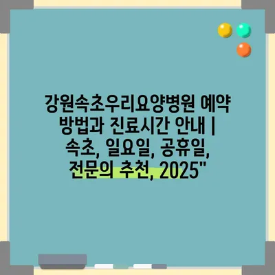 강원속초우리요양병원 예약 방법과 진료시간 공지 | 속초, 일요일, 공휴일, 전연락 추천, 2025″ 에 대해 자주 묻는 질문 TOP 5