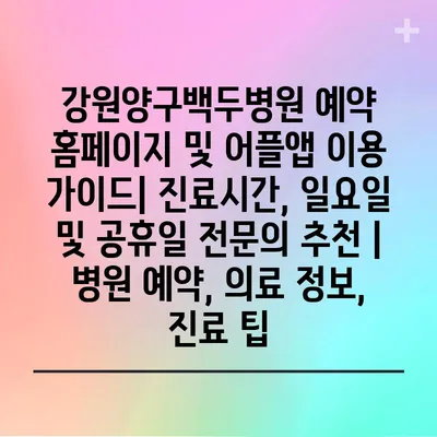 강원양구백두병원 예약 홈페이지 및 어플앱 이용 가이드| 진료시간, 일요일 및 공휴일 전문의 추천 | 병원 예약, 의료 정보, 진료 팁