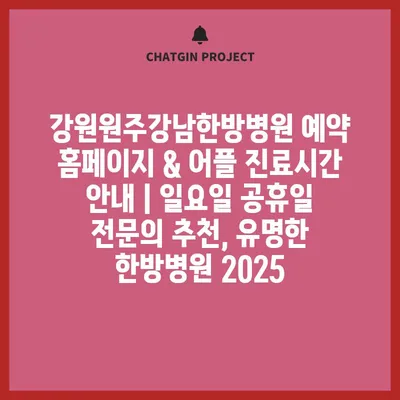 강원원주강남한방병원 예약 홈페이지 & 어플 진료시간 공지 | 일요일 공휴일 전연락 추천, 유명한 한방병원 2025 에 대해 자주 묻는 질문 TOP 5