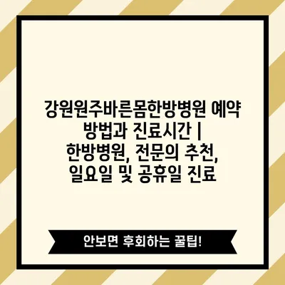 ✅ 강원원주바른몸한방병원의 예약 팁과 진료시간을 알아보세요.