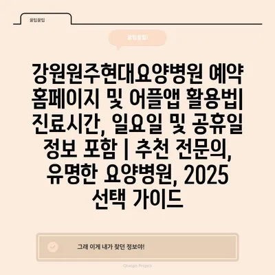 ✅ 강원원주현대요양병원 예약 방법을 자세히 알아보세요.