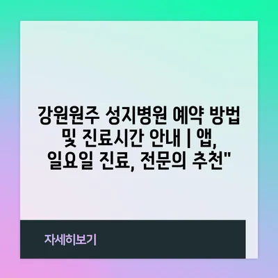 강원원주 성지병원 예약 방법 및 진료시간 공지 | 앱, 일요일 진료, 전연락 추천”에 대해 자주 묻는 질문 TOP 5