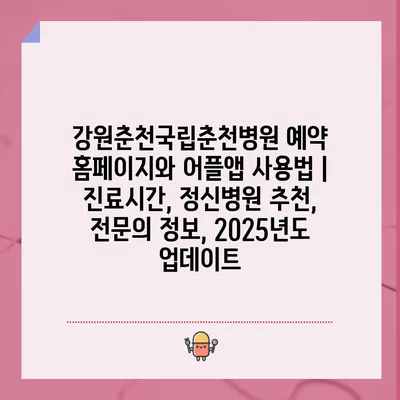 강원춘천국립춘천병원 예약 홈페이지와 어플앱 사용법 | 진료시간, 정신병원 추천, 전연락 정보, 2025년도 업데이트 에 대해 자주 묻는 질문 TOP 5