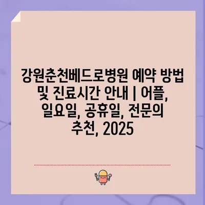 강원춘천베드로병원 예약 방법 및 진료시간 안내 | 어플, 일요일, 공휴일, 전문의 추천, 2025