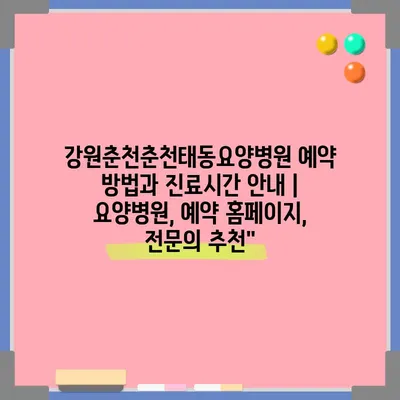 ✅ 강원춘천태동요양병원의 예약 방법과 진료시간을 알아보세요.