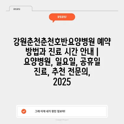 강원춘천춘천호반요양병원 예약 방법과 진료 시간 공지 | 요양병원, 일요일, 공휴일 진료, 추천 전연락, 2025 에 대해 자주 묻는 질문 TOP 5