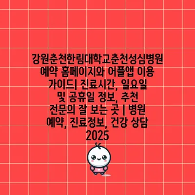 강원춘천한림대학교춘천성심병원 예약 홈페이지와 어플앱 이용 가이드| 진료시간, 일요일 및 공휴일 정보, 추천 전문의 잘 보는 곳 | 병원 예약, 진료정보, 건강 상담 2025