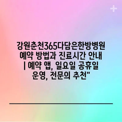 강원춘천365다담은한방병원 예약 방법과 진료시간 공지 | 예약 앱, 일요일 공휴일 운영, 전연락 추천에 대해 자주 묻는 질문 TOP 5