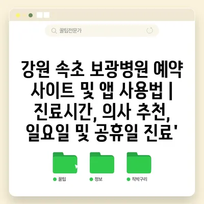 ✅ 강원 속초 보광병원 예약 방법과 팁을 확인해 보세요.