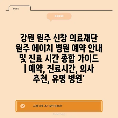 ✅ 원주 에이치 병원의 진료시간과 예약 방법을 자세히 알아보세요.