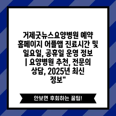 거제굿뉴스요양병원 예약 홈페이지 어플앱 진료시간 및 일요일, 공휴일 운영 정보 | 요양병원 추천, 전연락 상담, 2025년 최신 정보 에 대해 자주 묻는 질문 TOP 5