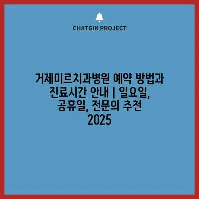 거제미르치과병원 예약 방법과 진료시간 공지 | 일요일, 공휴일, 전연락 추천 2025에 대해 자주 묻는 질문 TOP 5