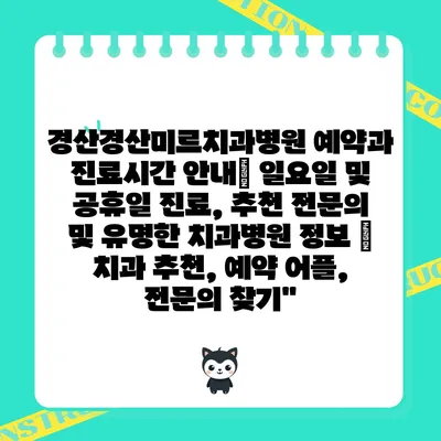 ✅ 경산미르치과병원의 진료시간과 예약 방법을 자세히 알아보세요.