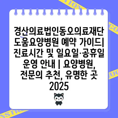 경산의료법인동오의료재단 도움요양병원 예약 설명서| 진료시간 및 일요일·공휴일 운영 공지 | 요양병원, 전연락 추천, 유명한 곳 2025 에 대해 자주 묻는 질문 TOP 5