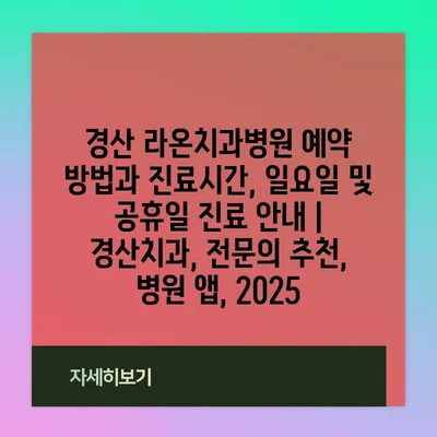경산 라온치과병원 예약 방법과 진료시간, 일요일 및 공휴일 진료 공지 | 경산치과, 전연락 추천, 병원 앱, 2025 에 대해 자주 묻는 질문 TOP 5
