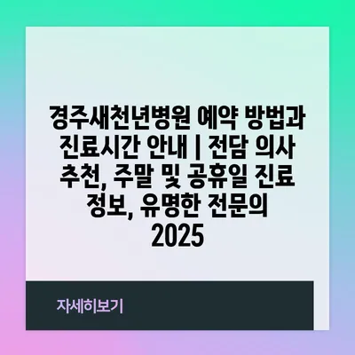 ✅ 경주새천년병원 예약 방법과 진료시간을 지금 바로 알아보세요!