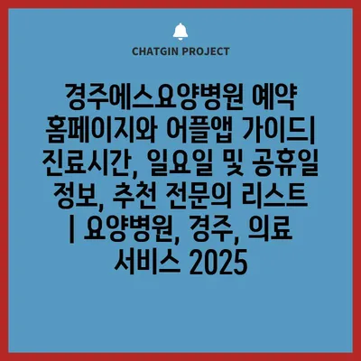 경주에스요양병원 예약 홈페이지와 어플앱 설명서| 진료시간, 일요일 및 공휴일 정보, 추천 전연락 리스트 | 요양병원, 경주, 의료 서비스 2025에 대해 자주 묻는 질문 TOP 5