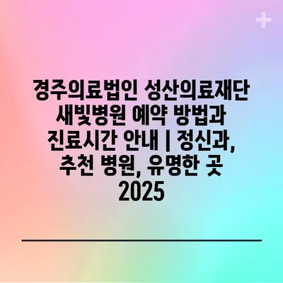 경주의료법인 성산의료재단 새빛병원 예약 방법과 진료시간 공지 | 정신과, 추천 병원, 유명한 곳 2025 에 대해 자주 묻는 질문 TOP 5
