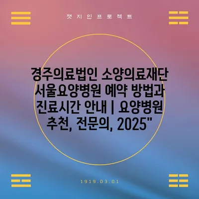경주의료법인 소양의료재단 서울요양병원 예약 방법과 진료시간 공지 | 요양병원 추천, 전연락, 2025