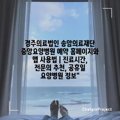✅ 경주의료법인 송암의료재단 중앙요양병원 예약 방법을 지금 바로 알아보세요.