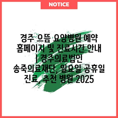 경주 으뜸 요양병원 예약 홈페이지 및 진료시간 공지 | 경주의료법인 송죽의료재단, 일요일 공휴일 진료, 추천 병원 2025