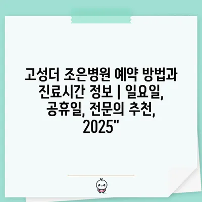 고성더 조은병원 예약 방법과 진료시간 정보 | 일요일, 공휴일, 전연락 추천, 2025에 대해 소개하겠습니다.