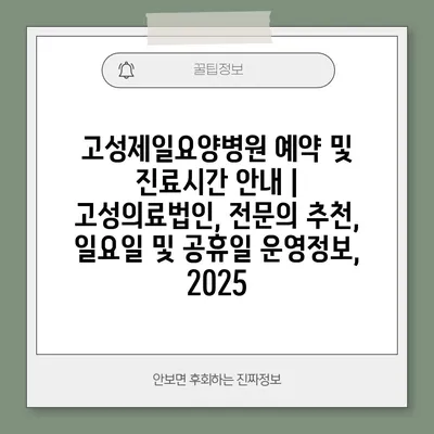 고성제일요양병원 예약 및 진료시간 공지 | 고성의료법인, 전연락 추천, 일요일 및 공휴일 운영정보, 2025
