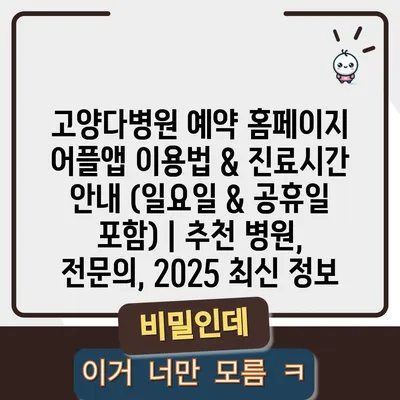 고양다병원 예약 홈페이지와 어플앱 이용법 & 진료시간 공지 (일요일 & 공휴일 포함) | 추천 병원, 전연락, 2025 최신 내용을 소개합니다.