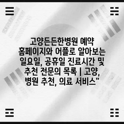 고양든든한병원 예약 홈페이지와 어플로 알아보는 일요일, 공휴일 진료시간 및 추천 전연락 목록 | 고양, 병원 추천, 의료 서비스