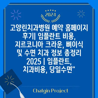 고양린치과병원 예약 홈페이지 후기| 임플란트 비용, 지르코니아 크라운, 뼈이식 및 수면 치과 정보 총정리 2025 | 임플란트, 치과비용, 당일수면