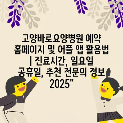 고양바로요양병원 예약 홈페이지 및 어플 앱 활용법 | 진료시간, 일요일 공휴일, 추천 전연락 정보 2025에 대해 알아보겠습니다.