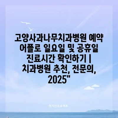 고양사과나무치과병원 예약 어플로 일요일 및 공휴일 진료시간 확인하기 | 치과병원 추천, 전연락, 2025″ 에 대해 자주 묻는 질문 TOP 5