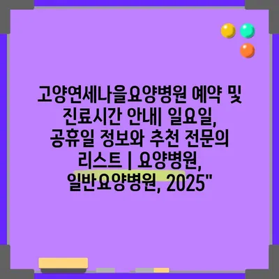 고양연세나을요양병원 예약 및 진료시간 공지| 일요일, 공휴일 정보와 추천 전연락 리스트 | 요양병원, 일반요양병원, 2025″ 에 대해 자주 묻는 질문 TOP 5