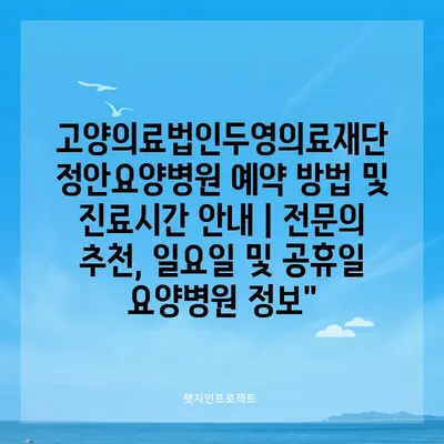 고양의료법인두영의료재단 정안요양병원 예약 방법 및 진료시간 안내 | 전문의 추천, 일요일 및 공휴일 요양병원 정보”