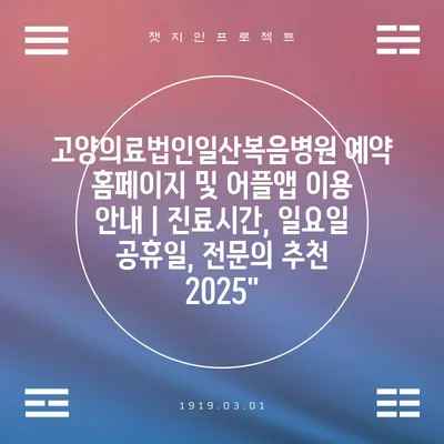 고양의료법인일산복음병원 예약 홈페이지 및 어플앱 이용 안내 | 진료시간, 일요일 공휴일, 전문의 추천 2025″