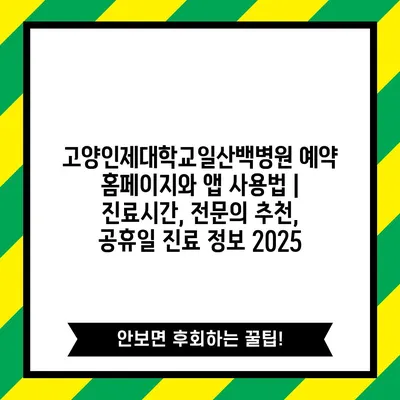 ✅ 고양인제대학교일산백병원의 예약 방법과 꿀팁을 알아보세요.