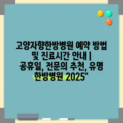 ✅ 고양자향한방병원의 예약 절차와 진료시간을 알아보세요.
