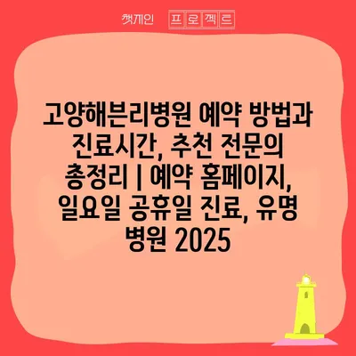 고양해븐리병원 예약 방법과 진료시간, 추천 전연락 총정리 | 예약 홈페이지, 일요일 공휴일 진료, 유명 병원 2025에 대한 내용을 알아보겠습니다.