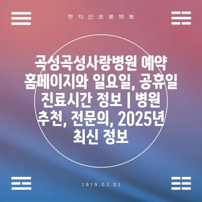 곡성곡성사랑병원 예약 홈페이지와 일요일, 공휴일 진료시간 정보 | 병원 추천, 전연락, 2025년 최신 정보 에 대해 자주 묻는 질문 TOP 5