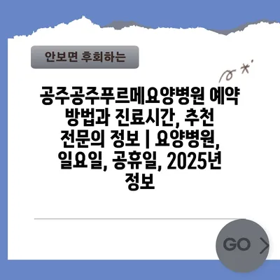 공주공주푸르메요양병원 예약 방법과 진료시간, 추천 전연락 정보 | 요양병원, 일요일, 공휴일, 2025년 정보 에 대해 자주 묻는 질문 TOP 5