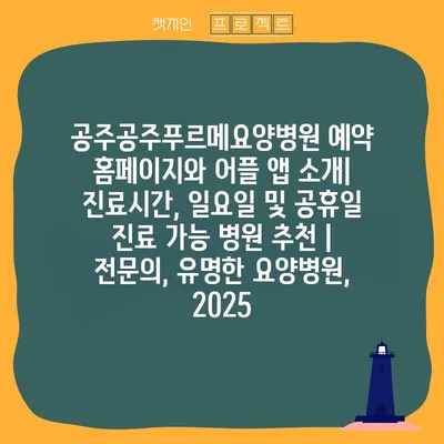공주공주푸르메요양병원 예약 홈페이지와 어플 앱 소개| 진료시간, 일요일 및 공휴일 진료 가능 병원 추천 | 전연락, 유명한 요양병원, 2025 에 대해 자주 묻는 질문 TOP 5