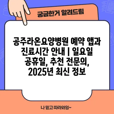 공주라온요양병원 예약 앱과 진료시간 공지 | 일요일 공휴일, 추천 전연락, 2025년 최신 정보 에 대해 자주 묻는 질문 TOP 5