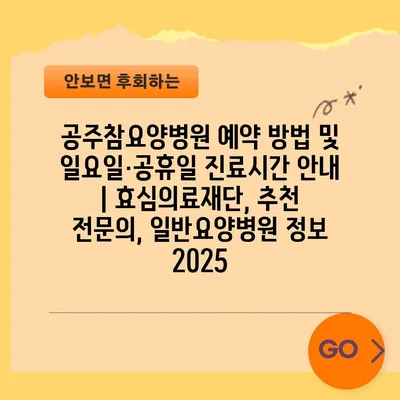 공주참요양병원 예약 방법 및 일요일·공휴일 진료시간 공지 | 효심의료재단, 추천 전연락, 일반요양병원 정보 2025에 대해 알아보겠습니다.