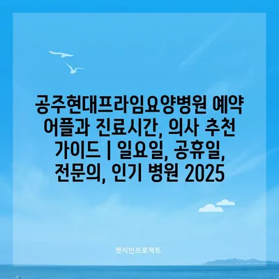 공주현대프라임요양병원 예약 어플과 진료시간, 의사 추천 설명서 | 일요일, 공휴일, 전연락, 인기 병원 2025 에 대해 자주 묻는 질문 TOP 5