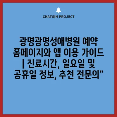 광명광명성애병원 예약 홈페이지와 앱 이용 가이드 | 진료시간, 일요일 및 공휴일 정보, 추천 전문의”